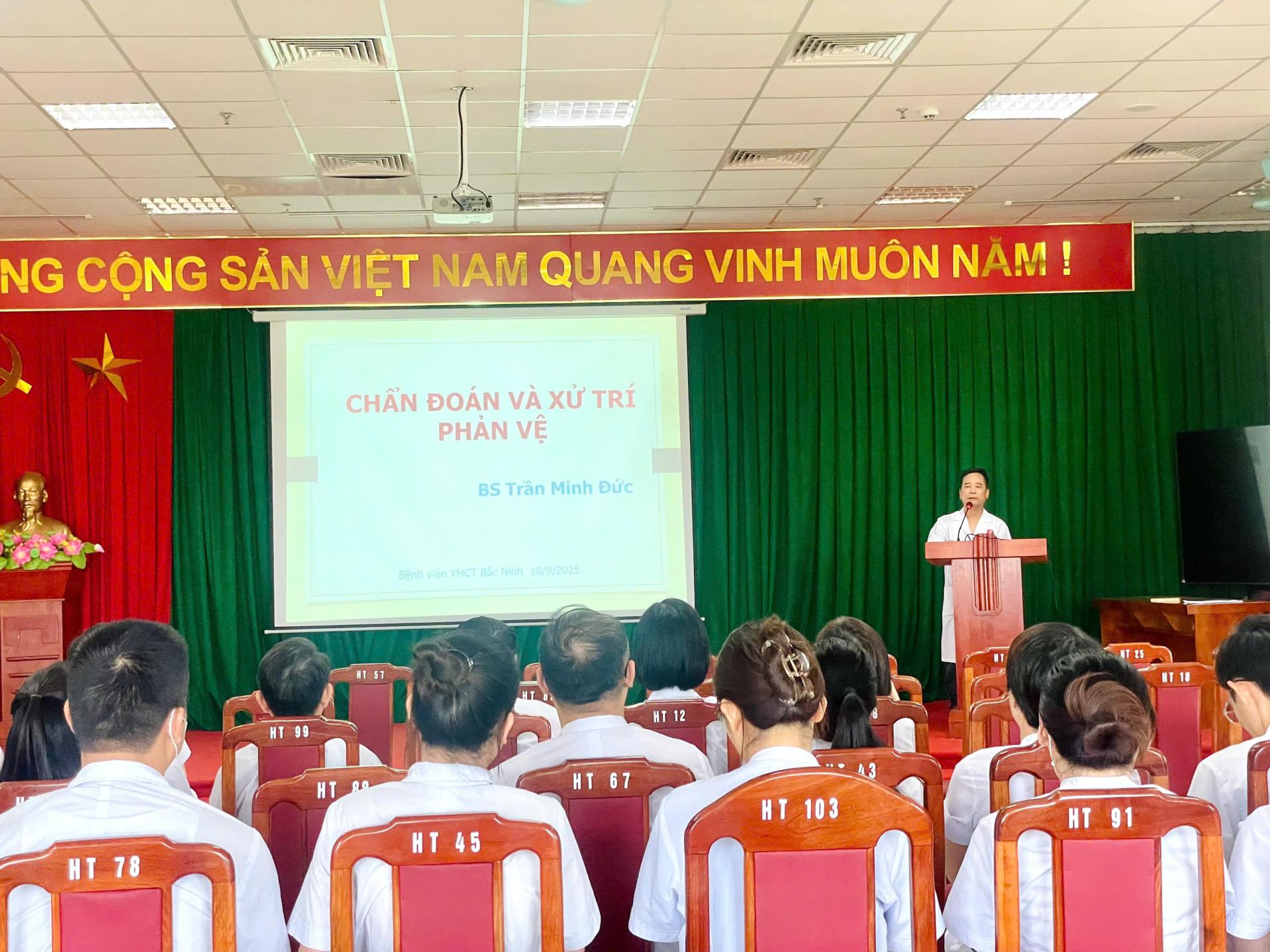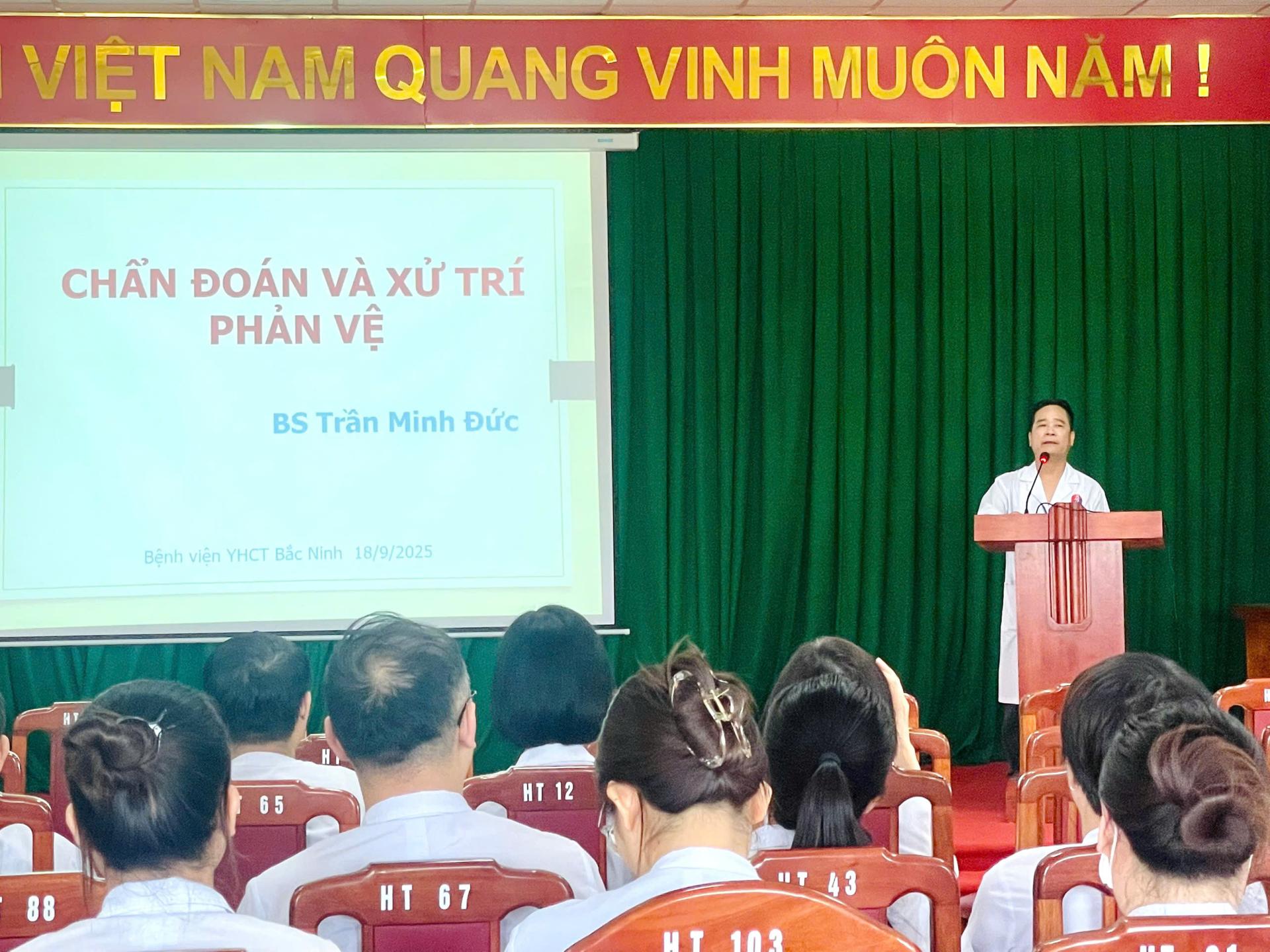 Chiều ngày 18/9/2025, Bệnh viện Y học cổ truyền Bắc Ninh đã tổ chức buổi tập huấn chuyên đề: “Chẩn đoán và xử trí sốc phản vệ” cho đội ngũ y, bác sĩ và điều dưỡng toàn viện. Buổi tập huấn do BS Trần Minh Đức - chuyên khoa hồi sức cấp cứu trực tiếp hướng dẫn.