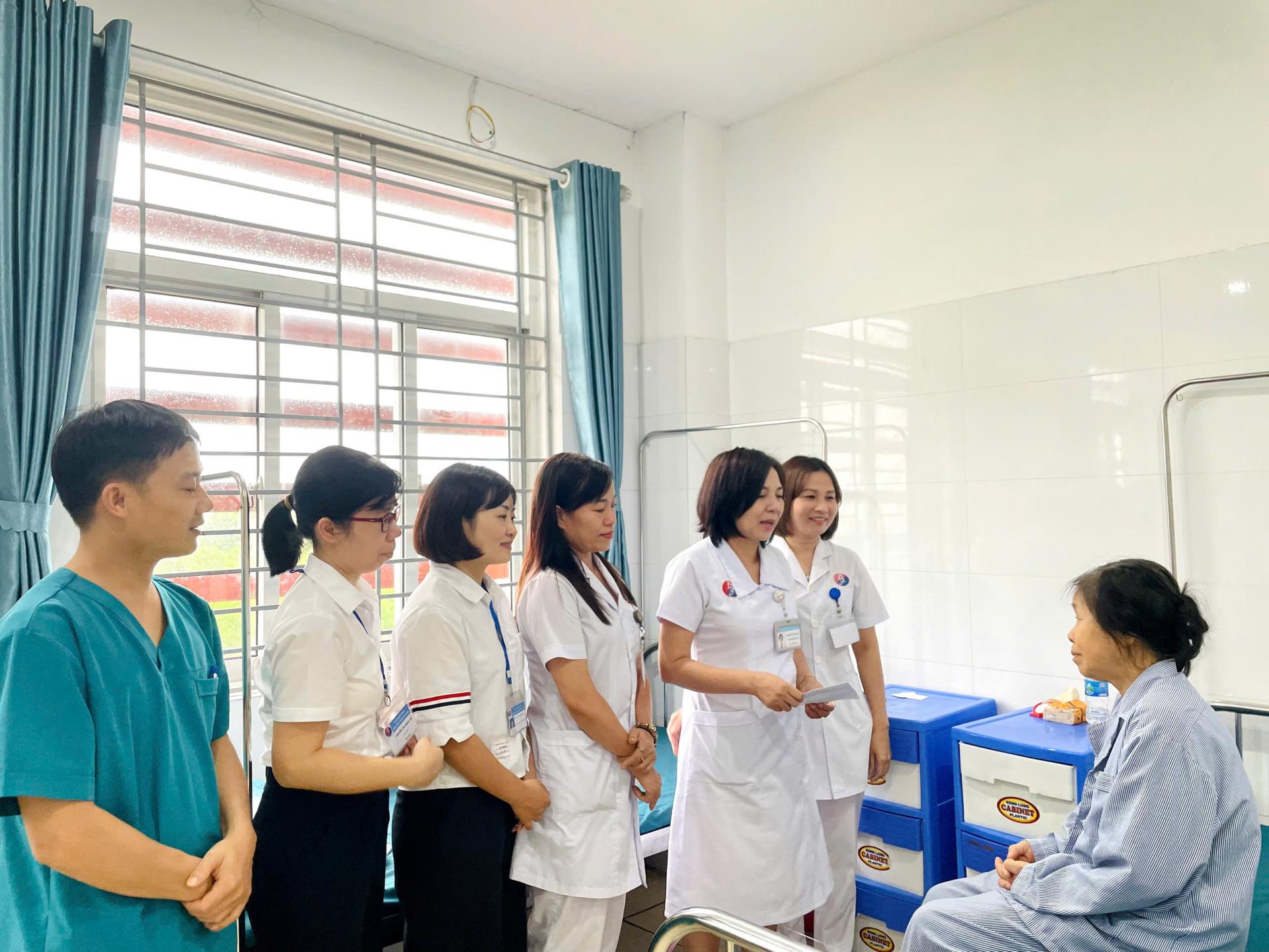 (Tổ Công tác xã hội trao quà và động viên người bệnh tại Khoa Ngoại Tổng hợp)