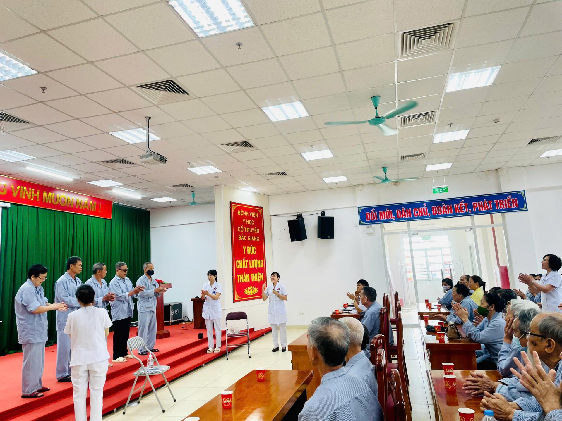 Thực hiện kế hoạch công tác chăm sóc người bệnh toàn diện và nâng cao chất lượng khám chữa bệnh, chiều ngày 22/5/2025, Bệnh viện Y học cổ truyền tỉnh Bắc Giang đã tổ chức buổi sinh hoạt Hội đồng người bệnh thường kỳ với sự tham gia của đại diện Ban Giám đốc, các trưởng khoa/phòng chức năng, điều dưỡng viên cùng đông đảo người bệnh và người nhà bệnh nhân đang điều trị nội trú tại bệnh viện.
