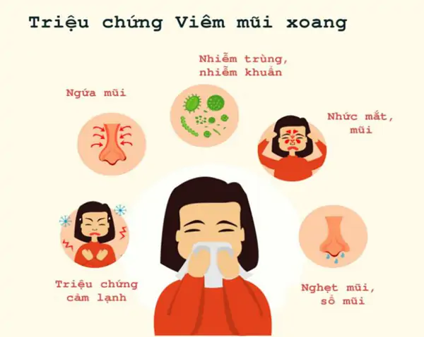 Viêm mũi xoang mạn tính với 4 triệu chứng chủ yếu là: Chảy nước mũi đục ở mũi trước hoặc mũi sau hoặc cả hai. Nghẹt hoặc tắc mũi. Đau tức, sưng nề vùng mặt, đau đầu trước trán. Mất khả năng ngửi