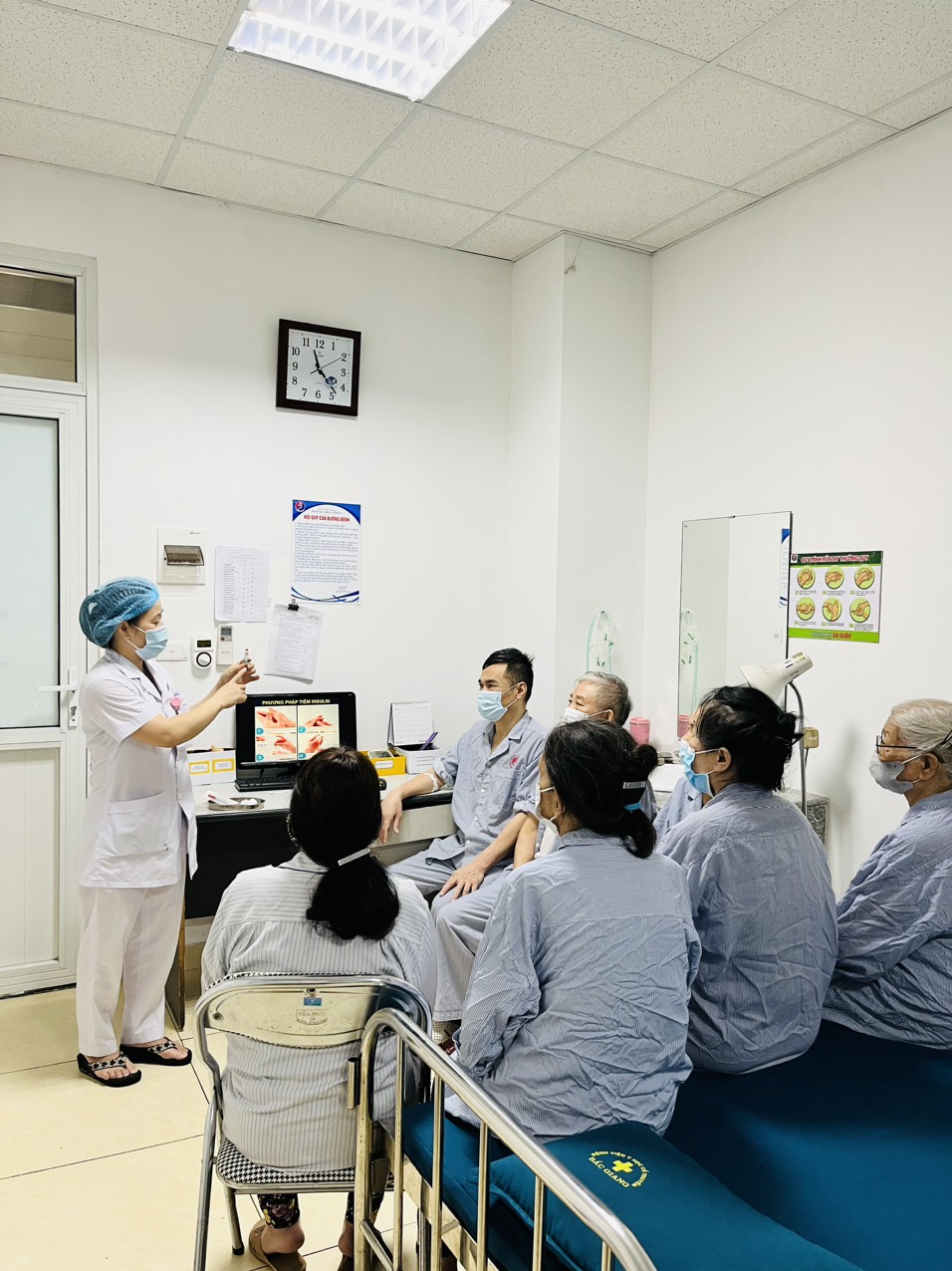 (CNDD Phan Thị Việt Anh hướng dẫn người bệnh tiêm insulin)
