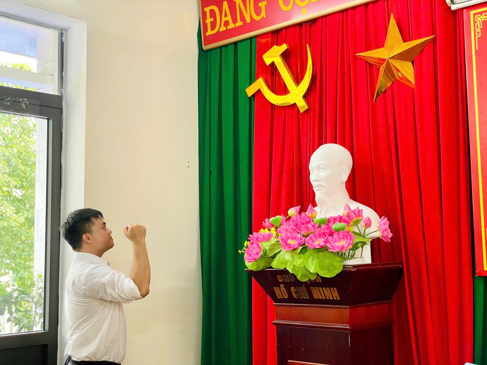 Buổi lễ được tổ chức trang trọng, đúng trình tự, thủ tục theo quy định của Điều lệ Đảng. Dưới cờ Đảng, cờ Tổ quốc và chân dung Chủ tịch Hồ Chí Minh, hai đồng chí Tân Đảng viên đã thực hiện nghi lễ tuyên thệ, thể hiện quyết tâm tiếp bước lý tưởng của Đảng, phấn đấu hoàn thành tốt nhiệm vụ của người đảng viên.