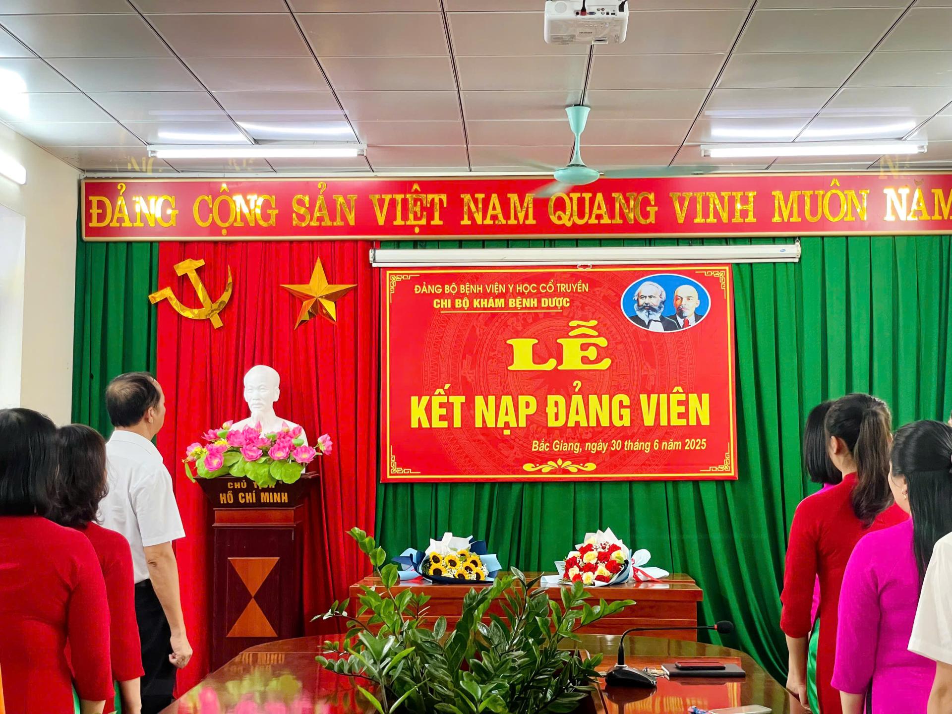 Chiều ngày 08/7/2025, Chi bộ Khám bệnh – Dược, Đảng bộ Bệnh viện Y học cổ truyền Bắc Ninh đã long trọng tổ chức Lễ kết nạp Đảng viên cho hai quần chúng: Lưu Quý Anh và Nguyễn Thị Thu Hà.
