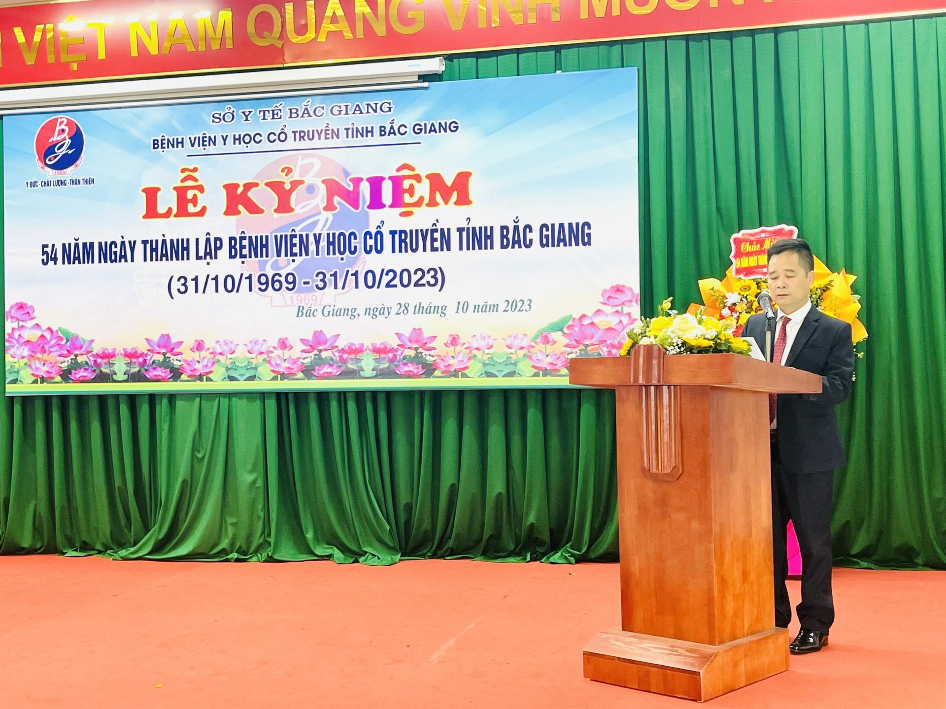 Thực hiện Kế hoạch số 435/KH-BVYHCT, ngày 28/10/2023 Bệnh viện Y học cố truyền tỉnh Bắc Giang tổ chức Lễ kỷ niệm 54 năm ngày thành lâp BV YHCT tỉnh Bắc Giang (31/10/1969-31/10/2023).