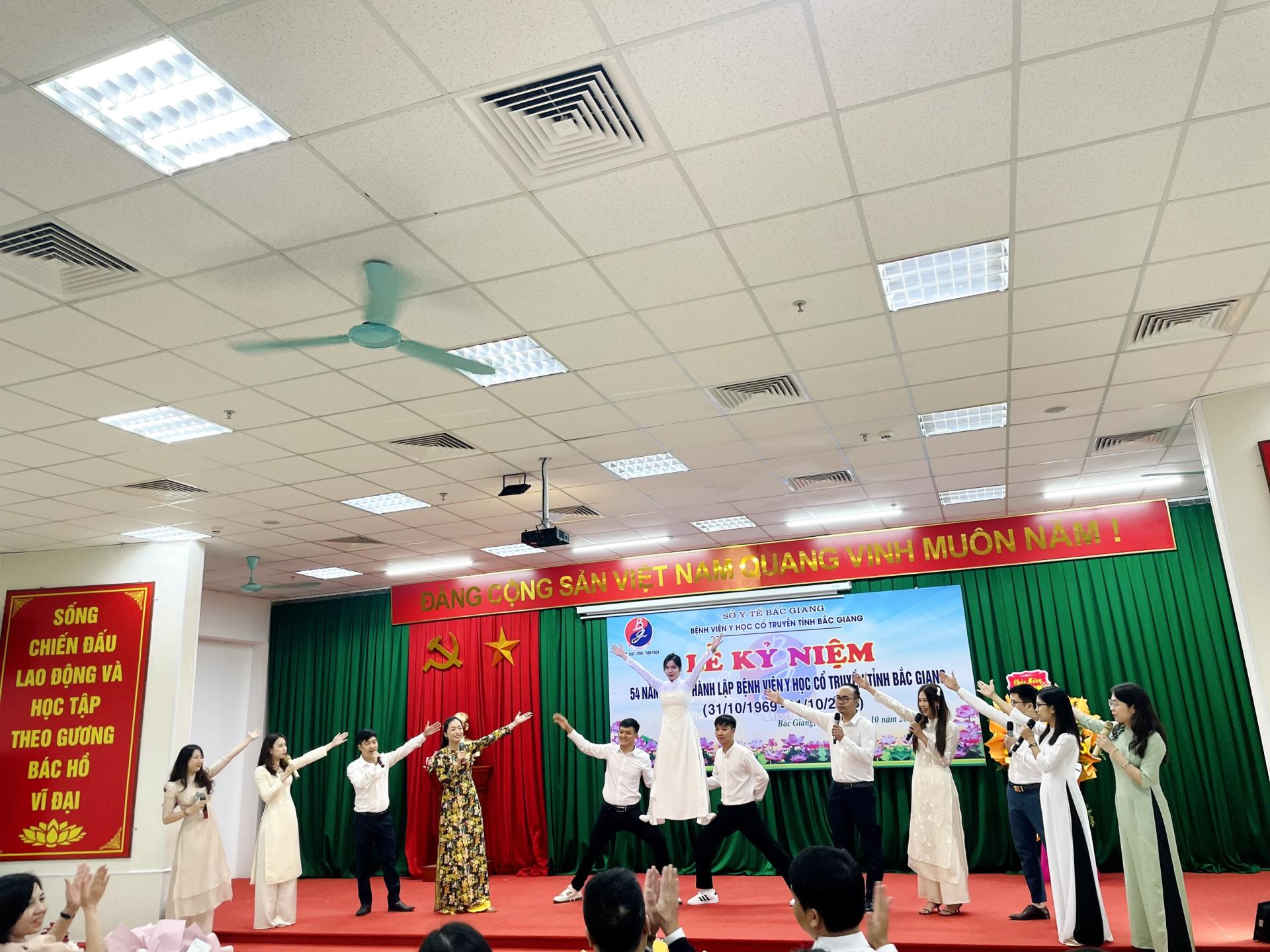 Nhiệt liệt chào mừng kỷ niệm 54 năm ngày thành lập; Toàn thể VCNLĐ đang công tác tại bệnh viện Y học cổ truyền tỉnh Bắc Giang hăng hái thi đua lập thành tích chào mừng kỷ niệm qua Hội thi Tay nghề Bác sĩ, Dược sĩ giỏi; cùng hoạt động văn hóa văn nghệ, thể thao sôi nổi của các khoa/phòng trong bệnh viện.