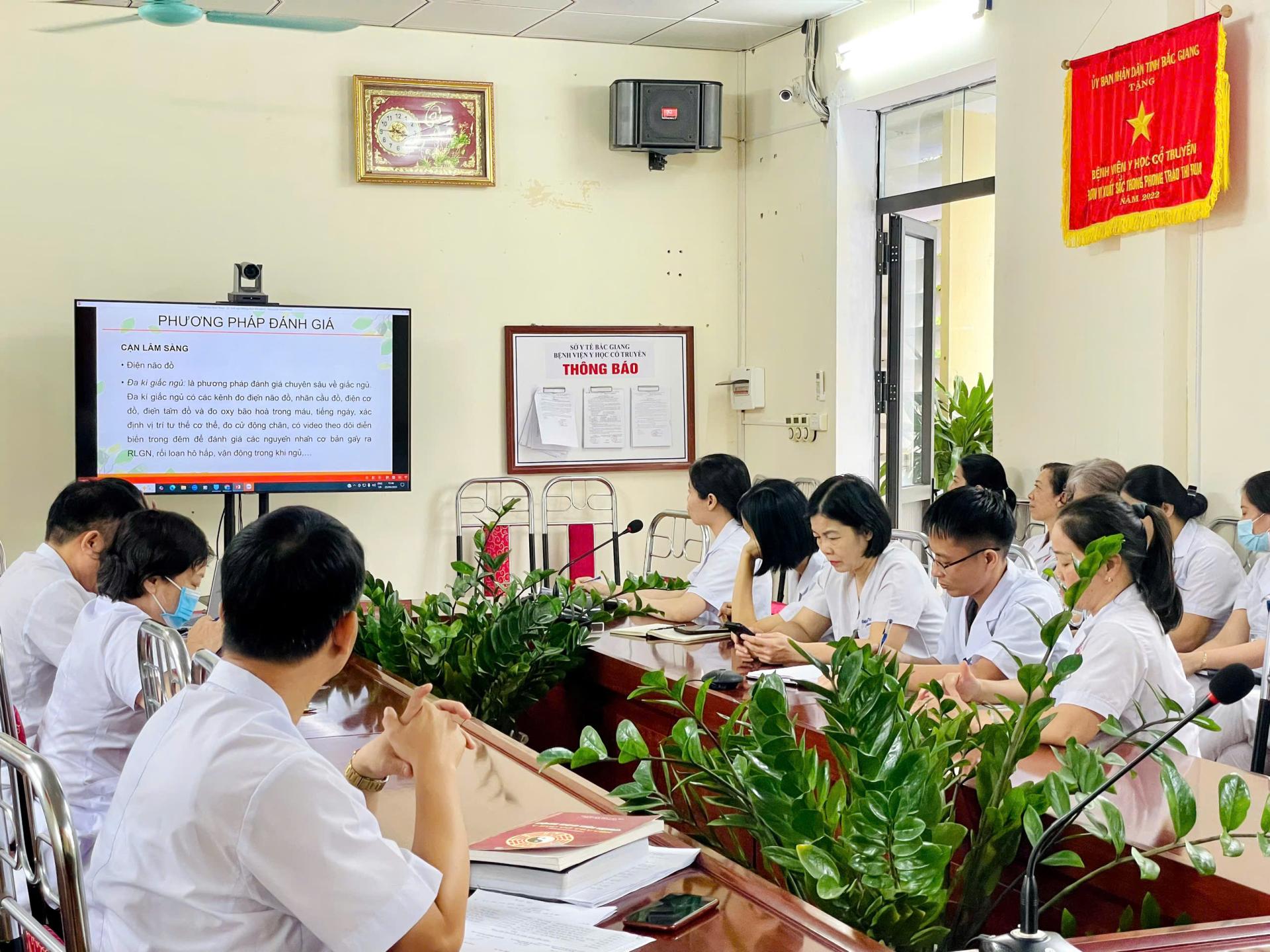Thực hiện kế hoạch tập huấn đào tạo, bồi dưỡng nâng cao trình độ chuyên môn nghiệp vụ cho cán bộ nhân viên y tế, chiều ngày 25/9/2025, Bệnh viện Y học cổ truyền Bắc Ninh đã tổ chức buổi tập huấn đào tạo liên tục với chuyên đề “Mất ngủ không thực tổn”. Trực tiếp tập huấn là ThS.BS Nguyễn Thùy Linh - người có nhiều kinh nghiệm trong lĩnh vực chẩn đoán và điều trị các rối loạn giấc ngủ.