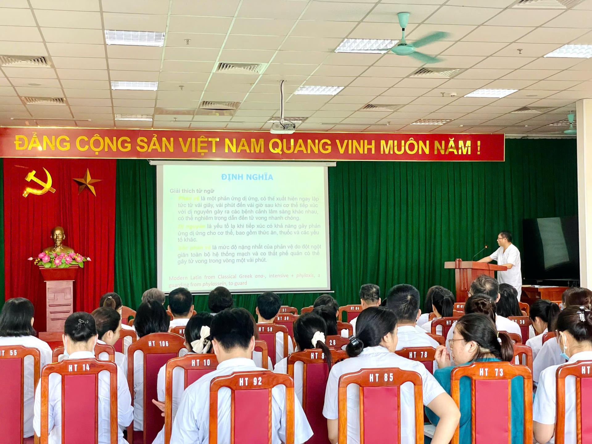 Chiều ngày 18/9/2025, Bệnh viện Y học cổ truyền Bắc Ninh đã tổ chức buổi tập huấn chuyên đề: “Chẩn đoán và xử trí sốc phản vệ” cho đội ngũ y, bác sĩ và điều dưỡng toàn viện. Buổi tập huấn do BS Trần Minh Đức - chuyên khoa hồi sức cấp cứu trực tiếp hướng dẫn.