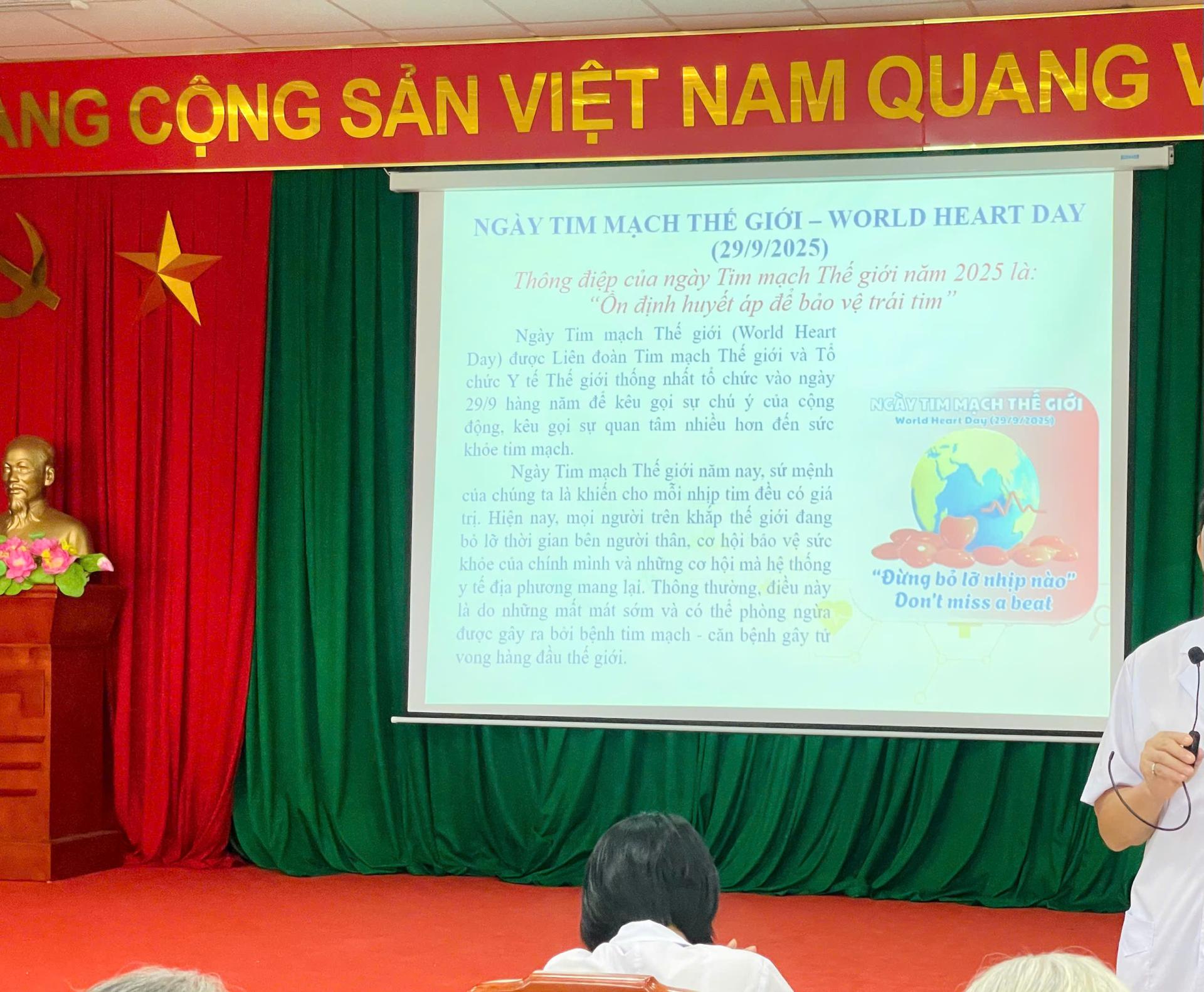 Nhân dịp sinh hoạt Hội đồng người bệnh, bệnh viện đã lồng ghép tuyên truyền về Ngày Tim mạch Thế giới (World Heart Day) 29/9/2025 với thông điệp “Ổn định huyết áp để bảo vệ trái tim”.