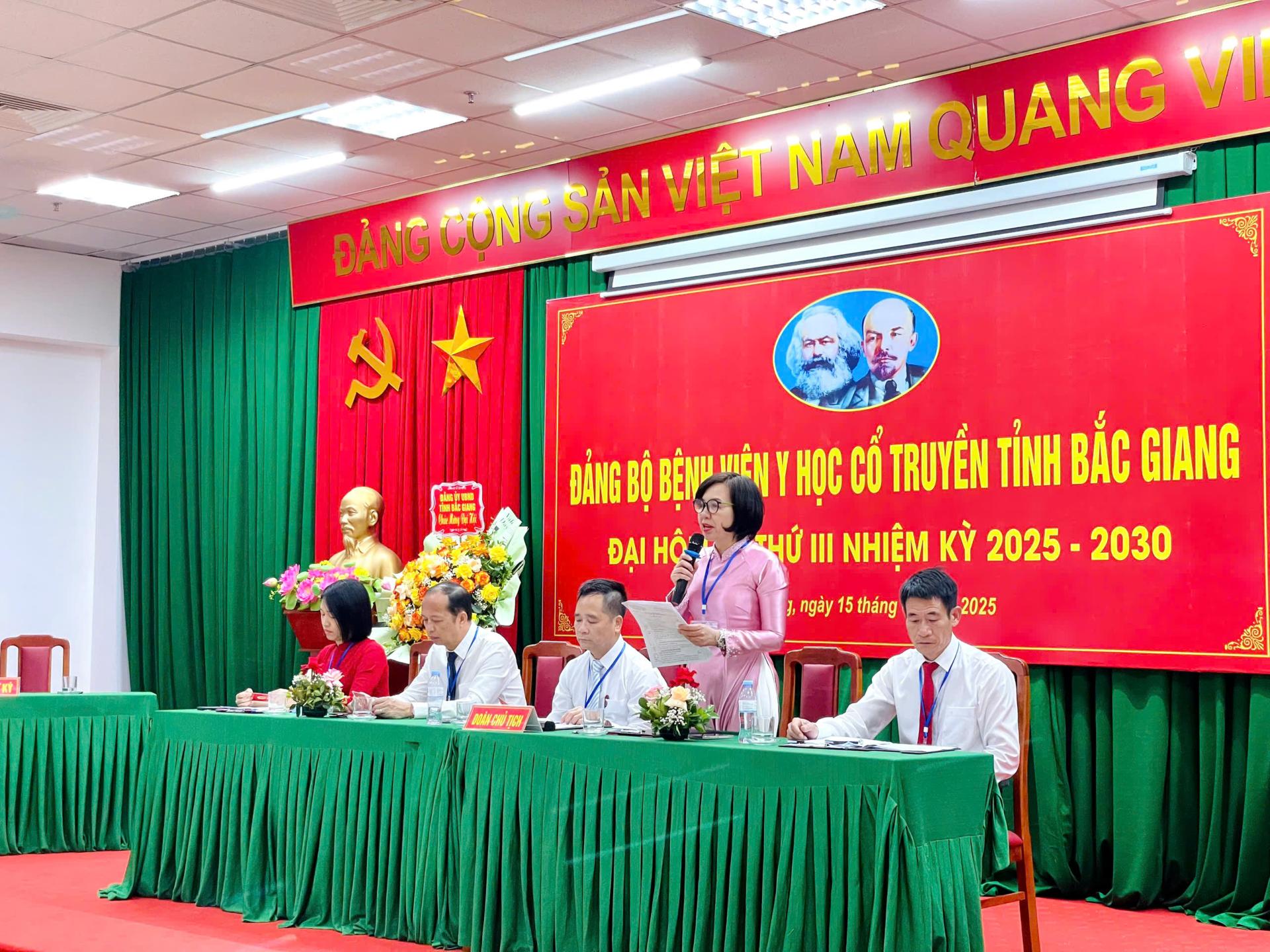 Thành công của Đại hội là kết tinh của trí tuệ, tinh thần đoàn kết, trách nhiệm và khát vọng cống hiến của toàn Đảng bộ. Đây là nền tảng quan trọng để Bệnh viện Y học cổ truyền tỉnh Bắc Giang tiếp tục phát triển vững chắc trong giai đoạn chuyển đổi số, góp phần nâng cao chất lượng chăm sóc sức khỏe nhân dân và khẳng định vị thế của đơn vị trong hệ thống y tế tỉnh nhà.