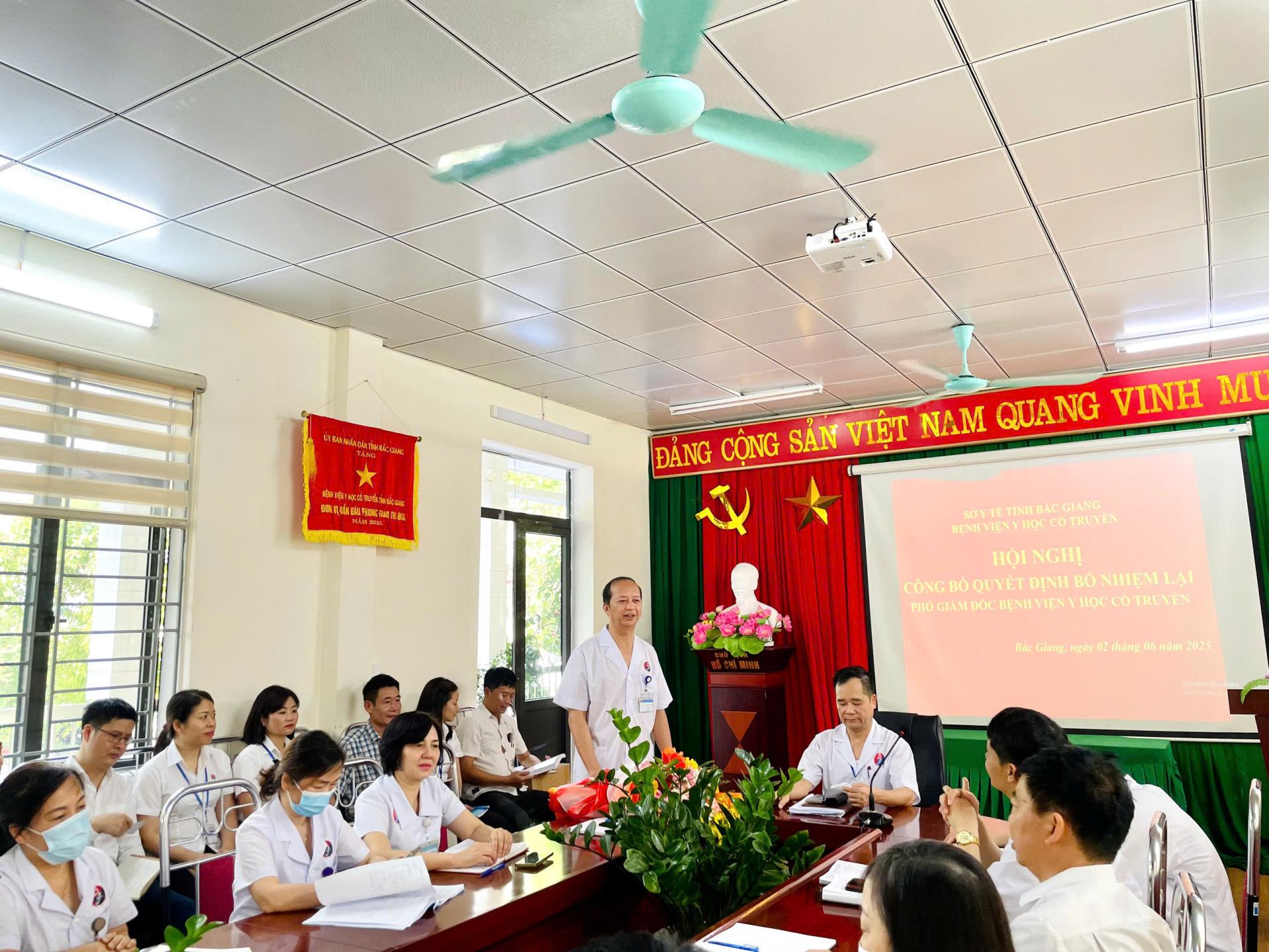 Căn cứ các quy định của Chính phủ và hướng dẫn của Ủy ban nhân dân tỉnh Bắc Giang về công tác quản lý, sử dụng và bổ nhiệm viên chức quản lý trong đơn vị sự nghiệp công lập; ngày 28/5/2025, Giám đốc Sở Y tế tỉnh Bắc Giang đã ban hành Quyết định số 1606/QĐ-SYT về việc bổ nhiệm lại chức vụ Phó Giám đốc Bệnh viện Y học cổ truyền đối với BSCKI Trần Quang Thi.