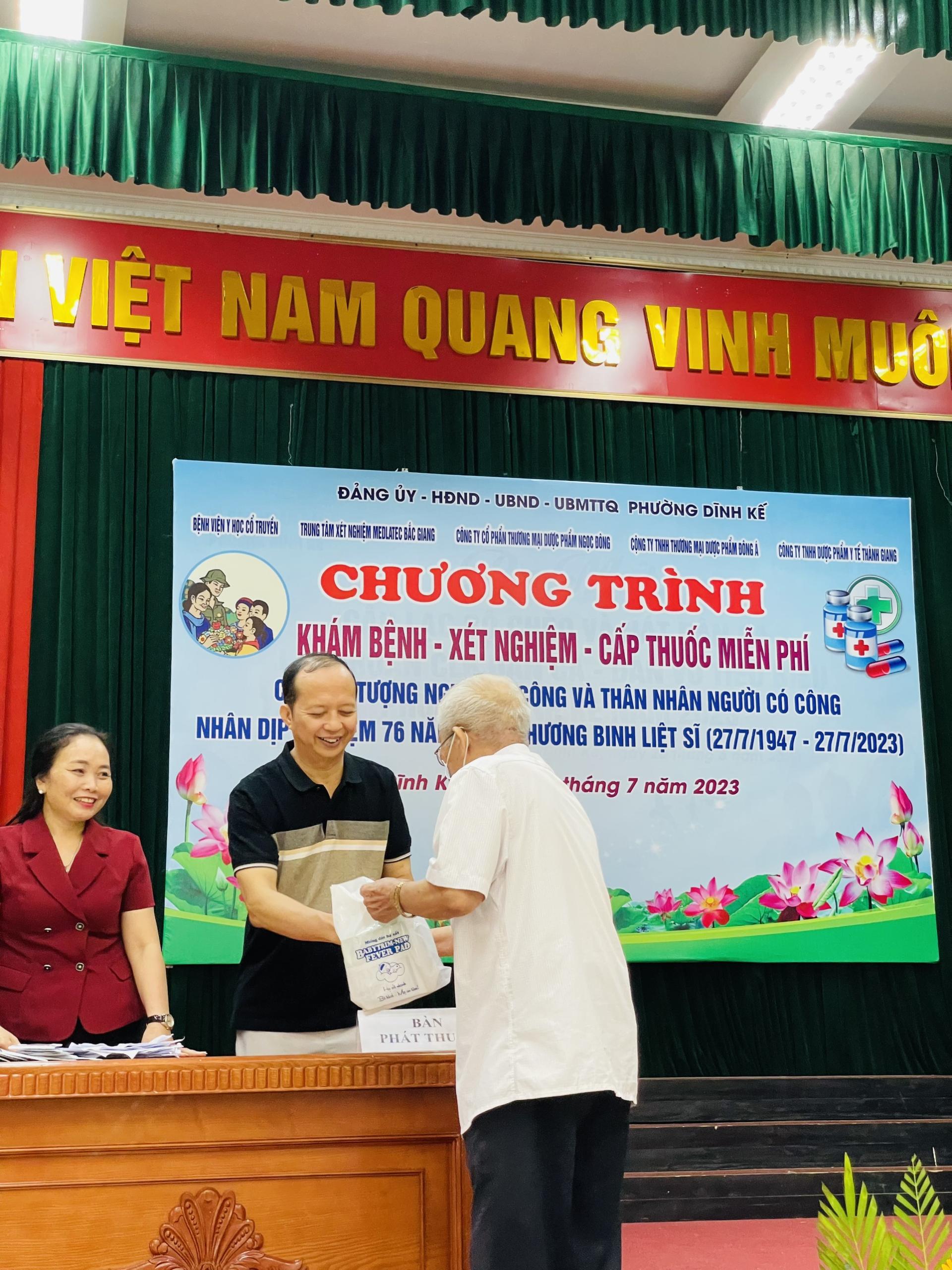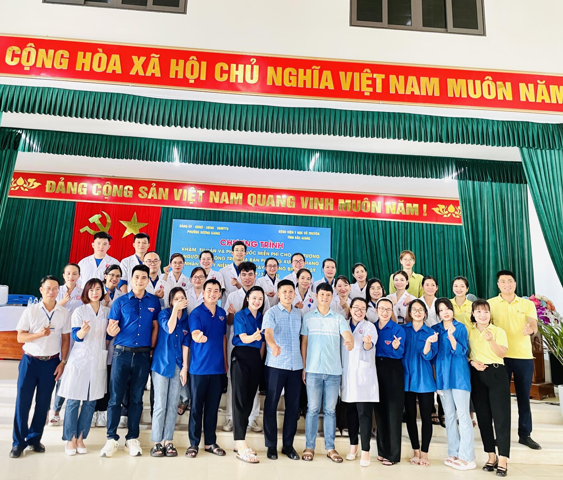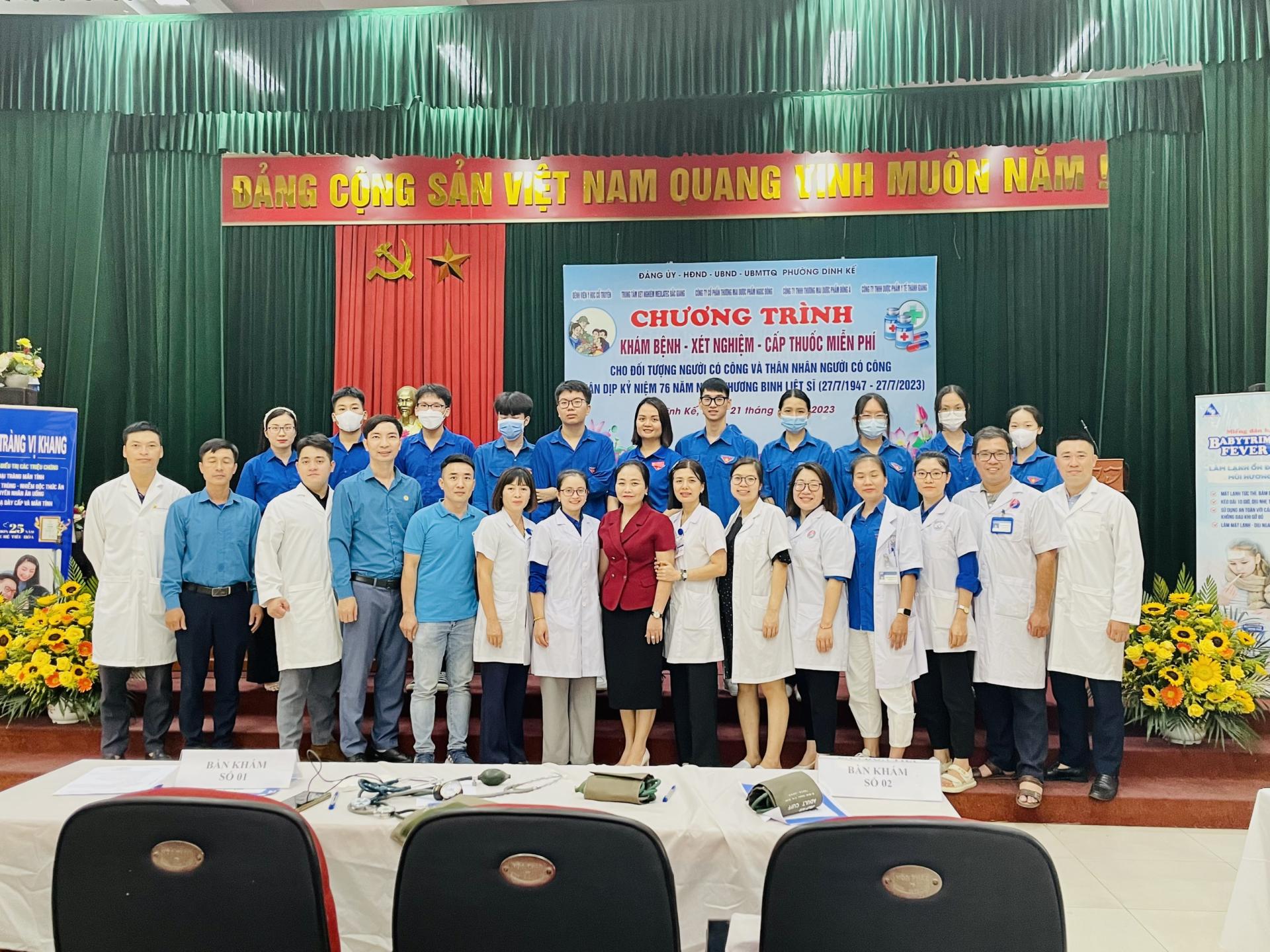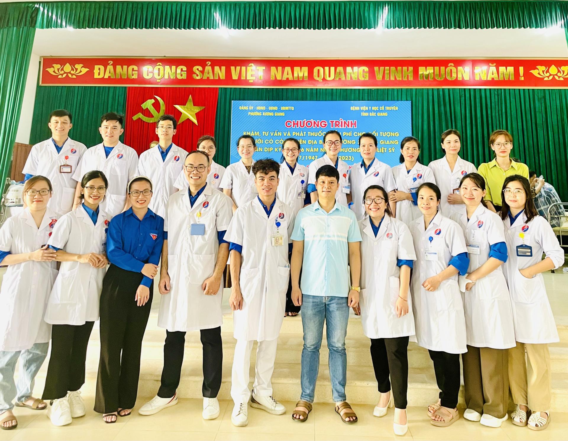 Chi đoàn Bệnh viện Y học cổ truyền phối hợp với Chi đoàn Trung tâm kiểm soát bệnh tật, Trung tâm xét nghiệm Medlatex Bắc Giang, Đoàn phường cùng với UBND phường nơi tổ chức chương trình khám,… cùng một số đoàn thể đã triển khai nhanh chóng hoạt động KCB, tư vấn sức khỏe và cấp thuốc tri ân đối với 505 đối tượng là Thương binh, Bệnh binh, gia đình người có công với cách mạng trên địa bàn các phường.