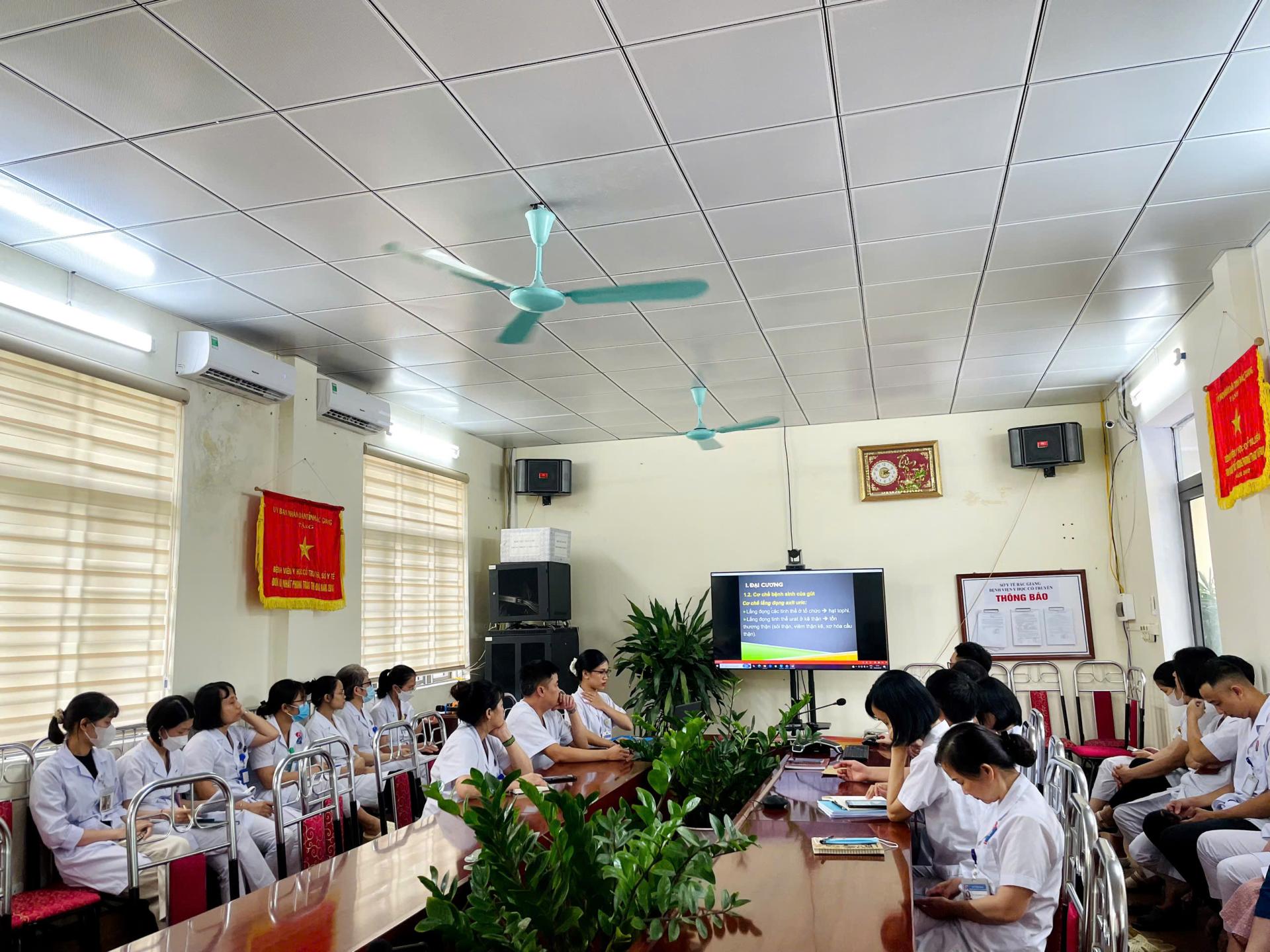 Tại buổi tập huấn, các bác sĩ trong khoa đã trình bày và phân tích các vấn đề chuyên sâu xoay quanh bệnh lý Gout - một bệnh rối loạn chuyển hóa ngày càng phổ biến, có xu hướng trẻ hóa và gia tăng trong cộng đồng.